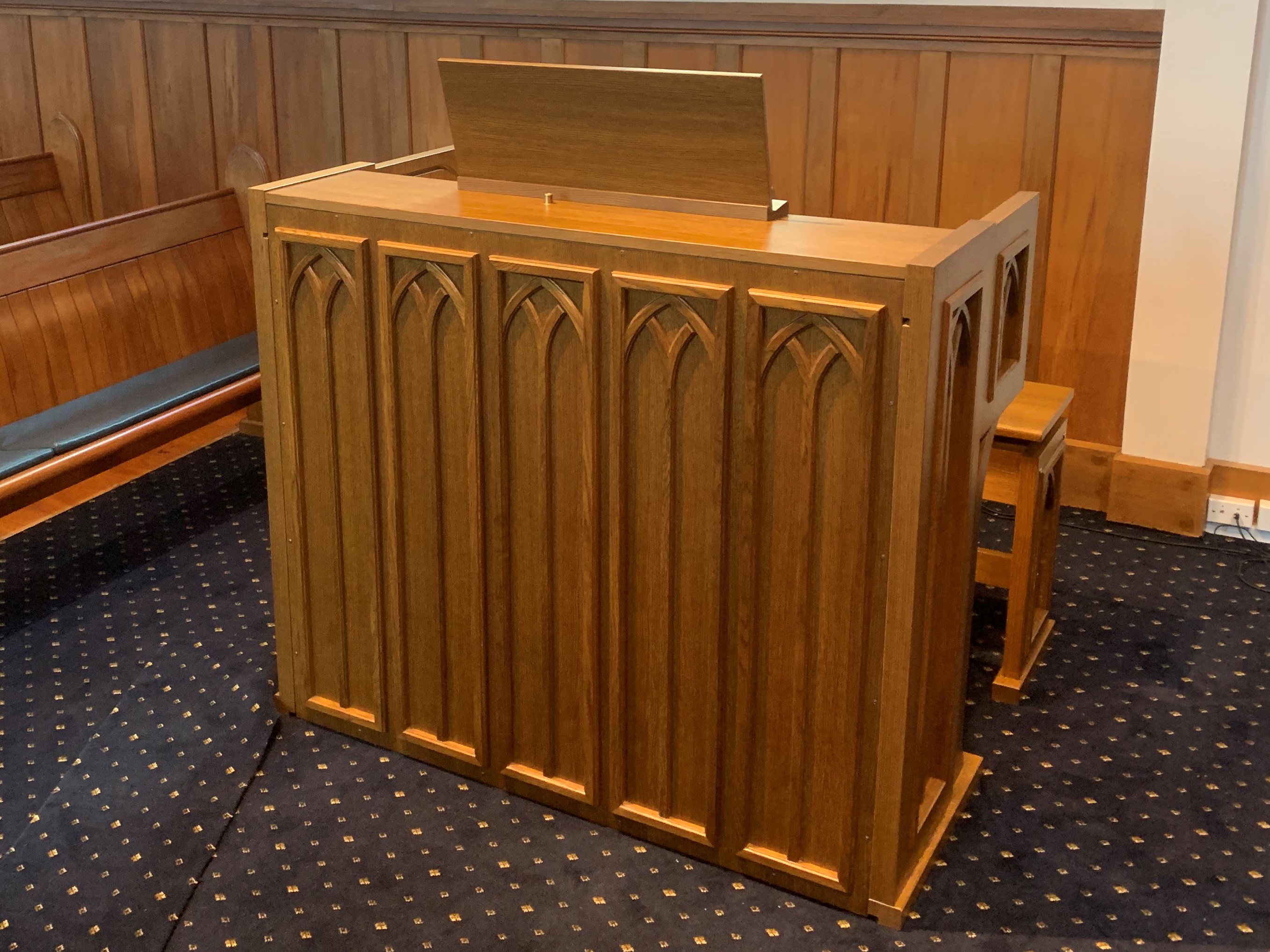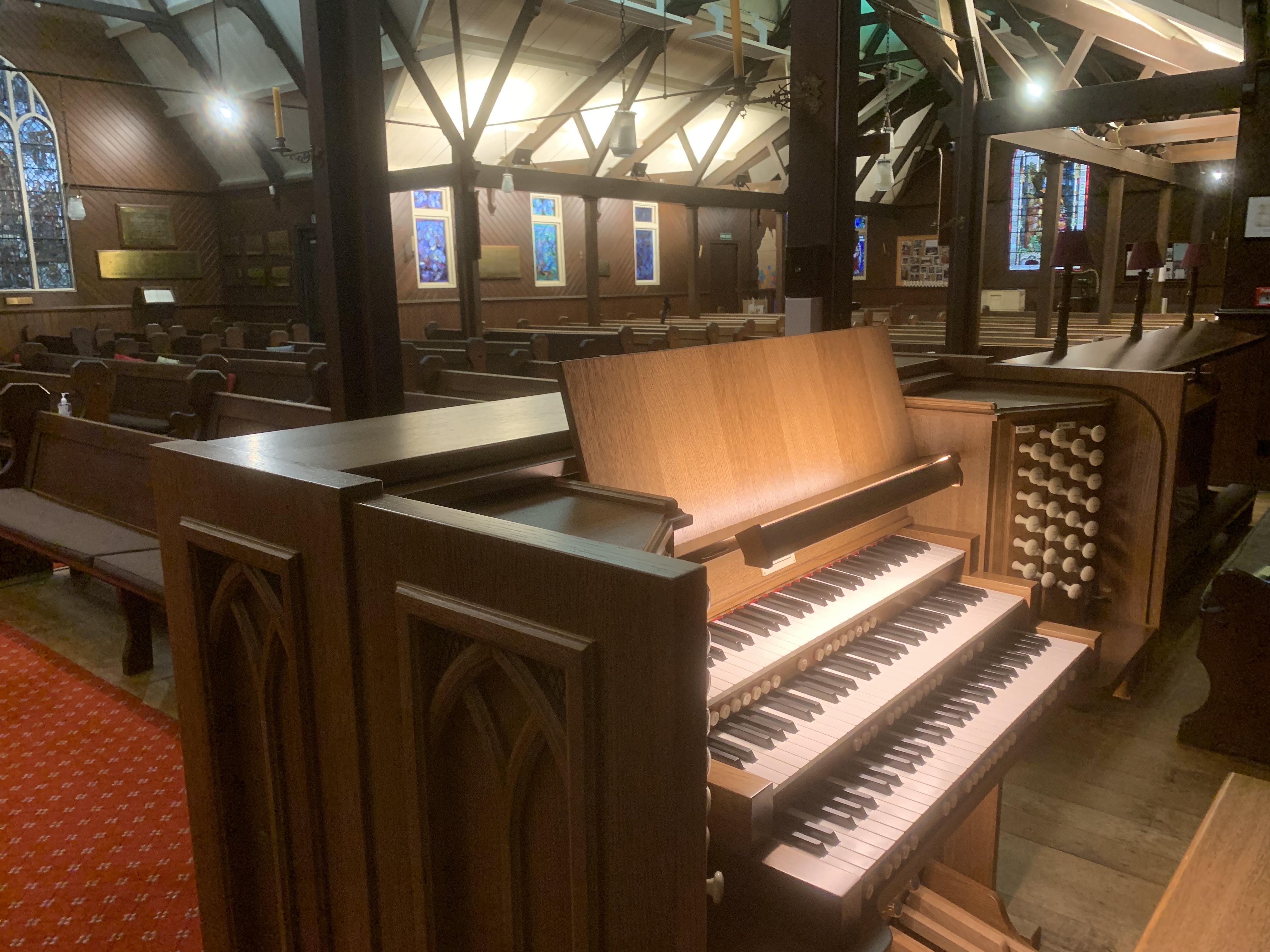 The organ at St Andrew's Anglican Church in Epsom has had a couple of consoles in it's history and some expansion over the years. This latest iteration has replaced the (already second hand) console from 2002 with a brand new Makin Windermere three manual organ.